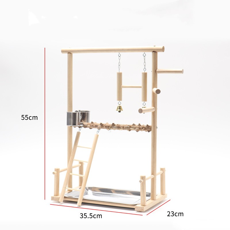 Bird Playground Interactive Platform Stand Pole Solid Wood Frame
