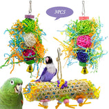 3pcs Bird Toy Parrot Gnawing Supplies Utensils Brushed Rattan Ball Grass Wooden Toys